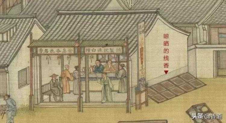安息香,除了是一种香料,在明清时期也代指线香,在香铺边上还晾晒着制作好的线香。