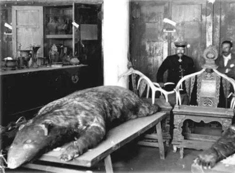 此图为奉天清宁宫宝物之一:怪兽(日本《历史写真》摄影杂志1925年版)。注意照片后面的椅子,那是满清特色的鹿角椅,用猎取的雄鹿角做的。这两把只是椅背上有鹿角装饰,还有整个椅子全是鹿角做的。中国人对椅子要求是尊严重于舒适,坐着其实可难受了,从太师椅到皇帝的宝座都是又硬又凉;所以沙发是个外来词。不过,画面上最吸引人的还是伏在桌上的那头怪兽。