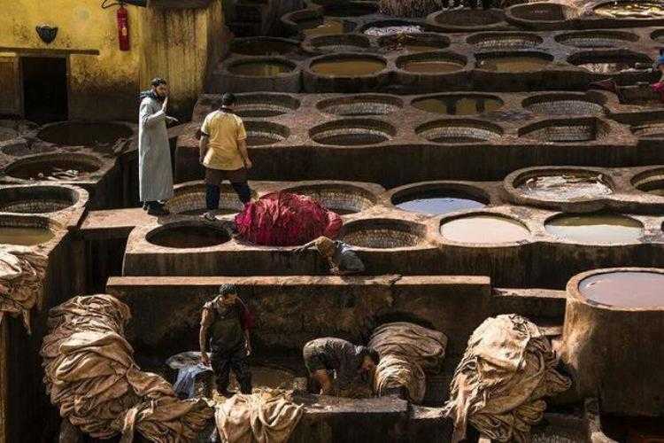 位于菲斯古城的皮革大染坊。