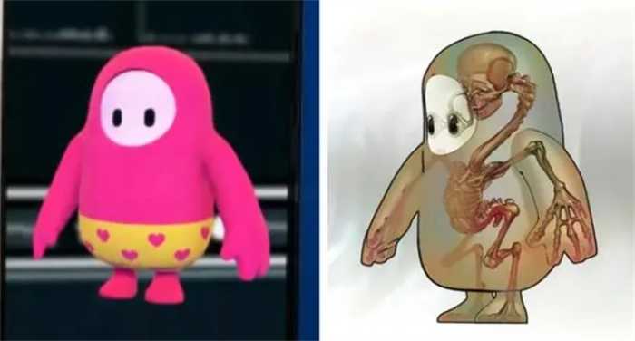 2020年,当大逃杀游戏《糖豆人》发布时,游戏界很快爱上了这个战斗的豆人。他们在华丽的迷你娱乐场地比赛,边走边击倒竞争对手,同时穿着各种精美的服装。但是有些玩家注意到糖豆人的服装与他们预期的不符。例如,这张照片通过面部开口显示了豆人头部的纤细形状。如今,大多数的人都认为这些豆人的身体会填满他们的衣服,但这又表明它们的身体像根木棍。考虑到这一点,粉丝们开始想知道连体衣下面的身体究竟是怎样的。有人甚至猜想,或许糖豆人是软绵绵、黏糊糊的像棍子的生物,身体可以随意从衣服伸出。或许它大部分的身体部位都是额外的东西组成的。