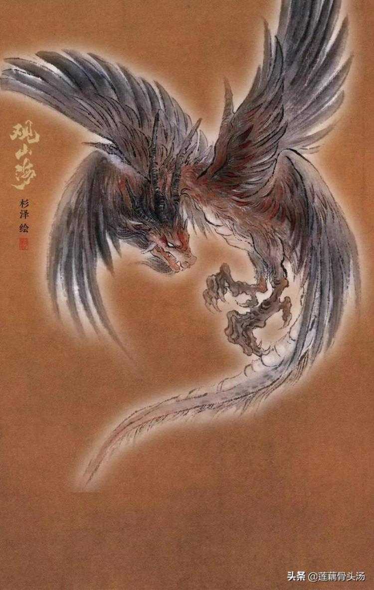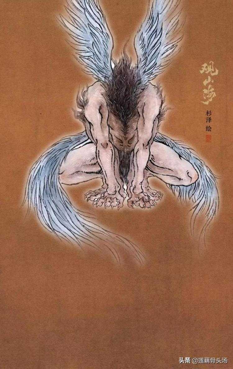 是鸟的身子,龙的脑袋。祭祀他们的礼仪,要把猪羊鸡犬等有毛之动物同玉和璋一同埋到地里,供神要用精选的稻米,要用白茅草做神用的席子。