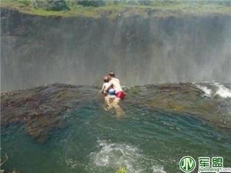 在非洲津巴布韦和赞比亚两国交界处的维多利亚瀑布,旱季来临时,水量减少并趋于平静,悬崖顶端边缘的岩石形成一堵天然的围墙,使河水不再奔流而下。被岩石挡住的少量河水在瀑布顶端形成一个天然水池,因为池子位于悬崖边上,被称为世界上最危险的游泳池