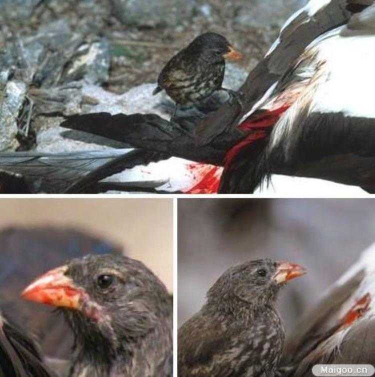 据认为,这种吸血雀最初进化出与加拉帕哥斯群岛上其他海鸟的共生关系。它们帮助其他海鸟寻找身上的寄生虫,找到后就作为自己的食物。这种拥有锋利喙部的鸟类在其他鸟类身上寻找寄生虫的过程中,难免会导致对方流血。它们发现,血液比虫子更美味。于是,它们最终进化出这种吸血的习惯。