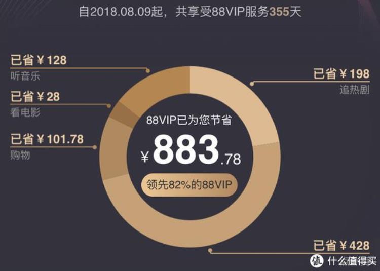 在88VIP的主页,系统告诉我已经节省了883.78元,在能享受95折的那一部分,我只节省了101.78元,而且都是天猫超市的商品,事实上我每年都要在天猫买很多东西,但都不知道为什么就避开了那些能享受95折的店,不过总的说,88VIP每年88元的价格很超值,至少在优酷会员这一项就已经回本了,不知道各位值友对此有什么看法,欢迎分享你的经历。