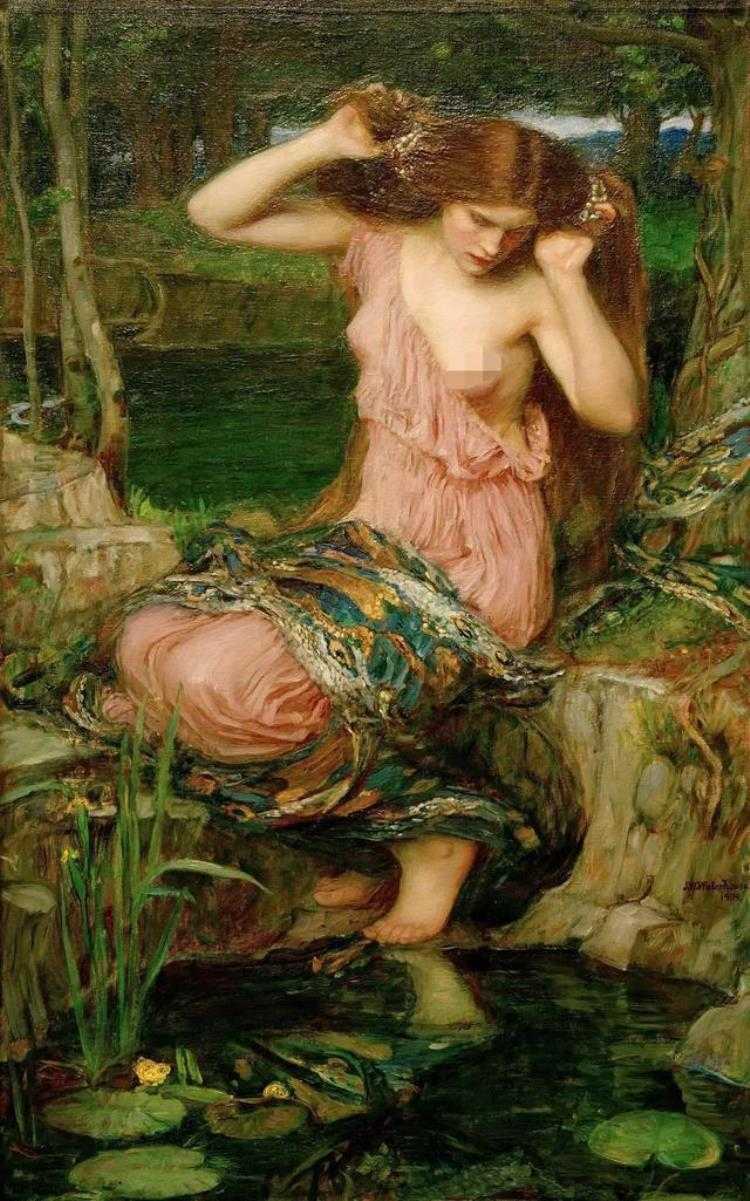 沃特豪斯,英国新古典主义绘画代表画家,拉斐尔前派画家,英国皇家美术学院会员。他的绘画以鲜艳明快的色彩和神秘的画面氛围而闻名于世,作品多描绘神话故事中的女性形象,他非常擅长表现女性身体的美,将女性身体中最优美的曲线和色彩表现地淋漓尽致。