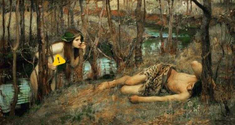沃特豪斯的作品大多以古代神话作为主题。如他有描写古代荷马史诗中《奥德赛》描写的一种叫“塞壬”的生物,传说“塞壬”原本是天上的天使,因为触犯了神,被惩罚折去了双翼贬下人间,形象和我们所认知的美人鱼几乎一样。堕落人间的“塞壬”通常会在岸上唱出纯净优美的歌声魅惑水手,在它们的领地也堆满了水手的尸骸。