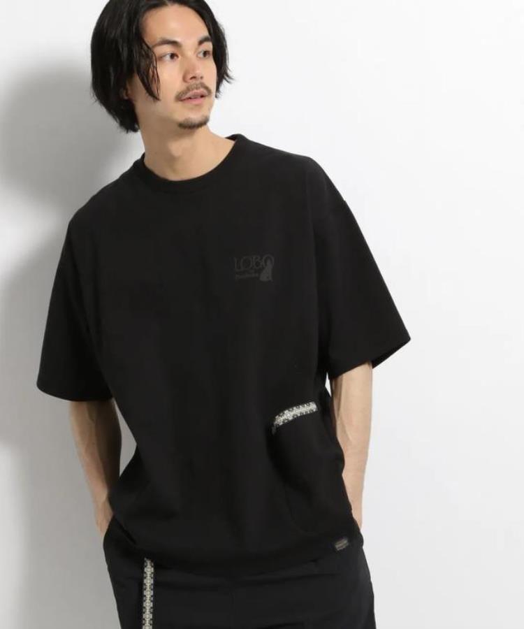 但这个支线时不时还会有动作,像这款和 niko and... 别注的 Side Pocket Jacquard Tape Tee,采用高精度筒仓纺棉和 SOLOTEX 混纺,两个侧袋上还有传统的「Harding」印第安提花图案,细节与质感都非常到位。