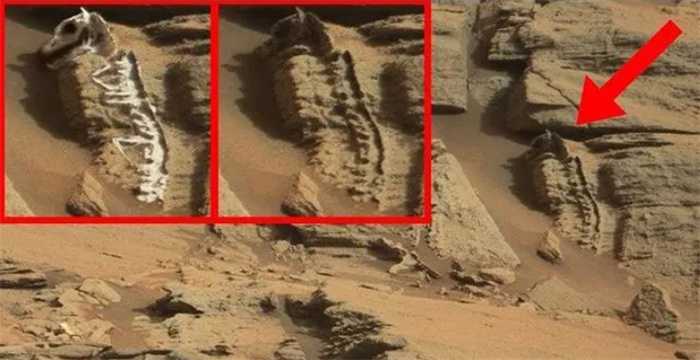 美国的火星车好奇号早在2012年就登陆了火星,对火星开展了漫长的科学探索和研究。在这颗红色星球上,它发现了似乎是某种爬行动物的骨骼遗骸。这个假设的奇怪生物看起来就好像一只外星蜥蜴,后腿巨大,前面还有两条极细的腿,它的腿部似乎也有一条短而卷曲的尾巴,有点类似于变色龙的尾巴。而它的头部,则有点类似于长鼻子的狗。这张照片的确来自于好奇号,可是为什么美国宇航局没有承认外星生物的存在呢?阴谋论者相信,美国宇航员拒绝承认是为了防止造成全球性恐慌。阴谋论者还推测,这种生物曾经是一种宠物,在火星还没有变得不宜居住之前,它被火星上的人类或生物所拥有。当然,科学家拒绝承认阴谋论者的推断,仅是将其视为普通的火星岩层。