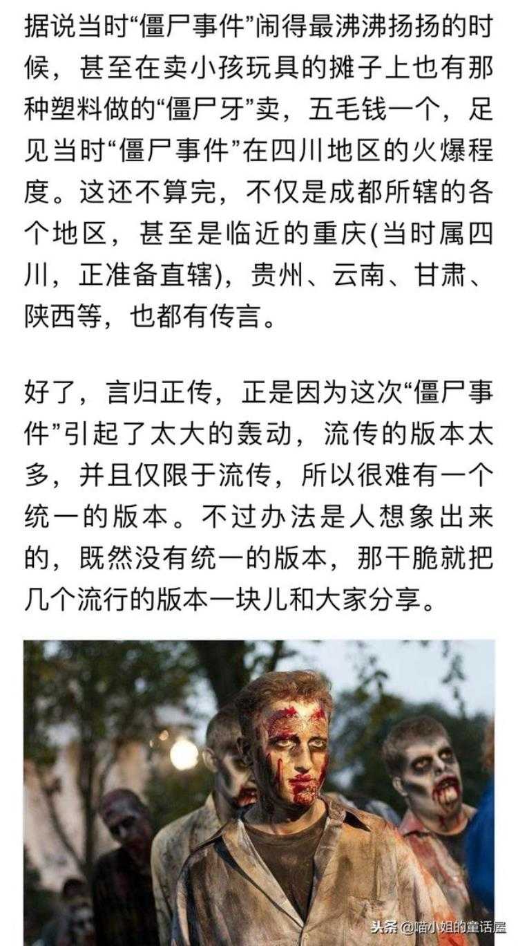 3、“僵尸这个事喃.是轰动咯全四川的,当时我在读5.年级撒.非吓人的.据说僵尸还扮成人样子..坐火车到处跑..看到你合适按就咬你一口.我天天放学只有那么怕遇到起咯”。