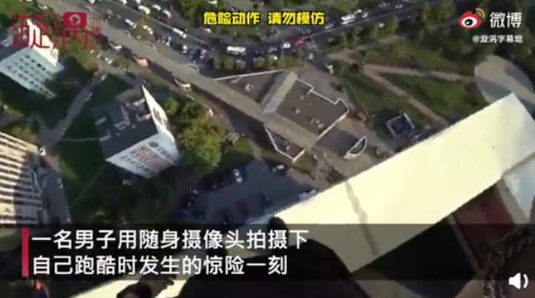 俄男子跑酷脚滑摔下房顶死里逃生侥幸抓住电线狂喘气网友我腿软了