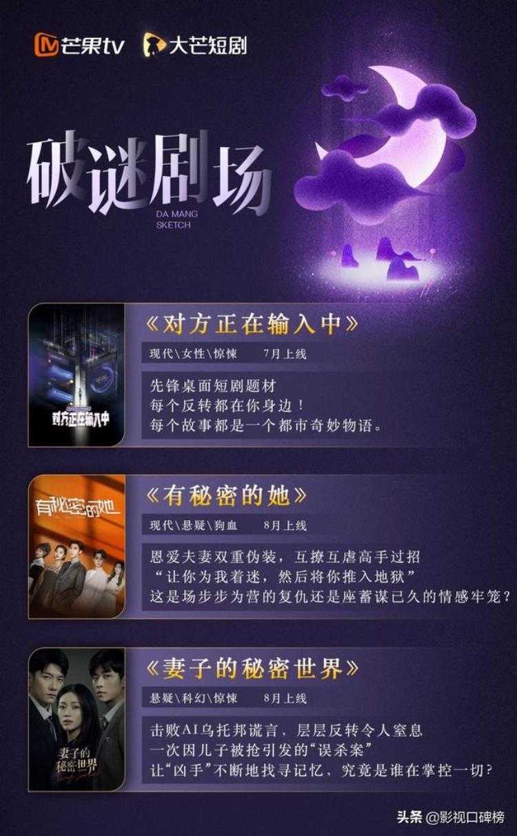 芒果台新片「芒果TV大芒短剧今夏片场片单发布治愈国风破迷均有佳作」