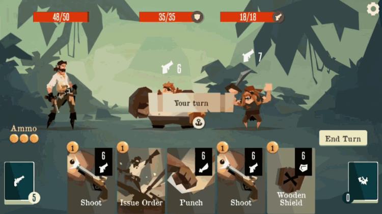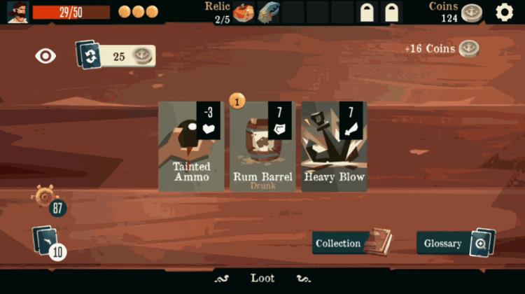 与《炉石传说》这样的集换式卡牌游戏不同,Roguelike DBG游戏中,玩家无法提前编辑自己的卡牌,每一次战斗都是从公共牌库中随机抽取卡牌,在《航海奇闻》中,更是直接限制了玩家最多只能同时拥有五张随机抽取的卡牌,并利用有限的子弹寻求击杀敌人最有效的组合。