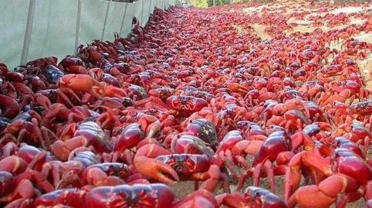 圣诞岛的规模性红蟹迁移是地球上最不可思议的当然全过程之一。每一年,上百万只这种大蟹都是会从森林中出去,到海洋里繁育,一群群地越过路面、溪水、岩层和沙滩。迁移从多雨季节的第一场降水逐渐。这一般发生于10月或11月,但偶尔会迟至12月或1月。