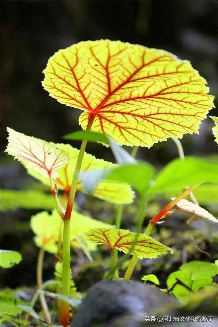 不远处,一片翠绿的山崖边,偶尔会见到粉红色的小花,开得正艳,为这百里峡谷增添了一缕彩色。它叫:中华秋海棠。俗称海棠花,一般在6、7月份开放,花粉红色,叶柄及茎红色,叶酸可解渴,是河北重要的野生花卉。