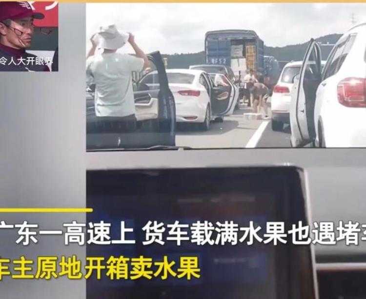 我们再来看这个,论商业头脑没人可以与这位大哥比拟,堵得走不动的时候正逢天气炎热,“太阳当空照”,这时候卖点水果不得赚翻了?不得不说当届公民,个个都是人才啊!