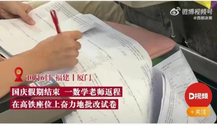 国庆假期结束,一位数学老师返程,在高铁座位上奋力地批改试卷。拍摄者邻座称,自己是一名高中语文老师,很感同身受,自己也要回学校赶ppt。不是老师也要赶作业,而是以前赶作业的一批孩子现在长大了,要赶着批改试卷,想想也是蛮有趣的。