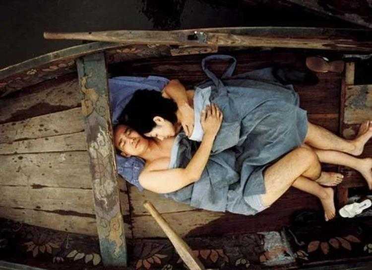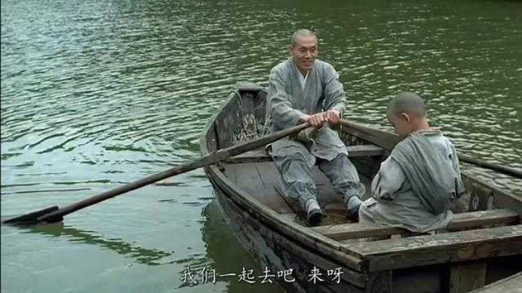 早上,老和尚起床发现两人衣衫不整的躺在船上睡觉。