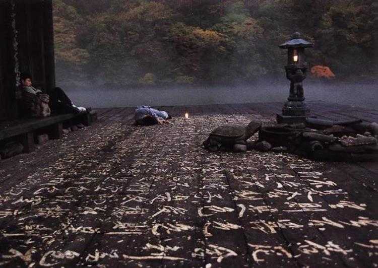 片中还有各种符号化的设置,首先是寺庙里没有墙,只有门。