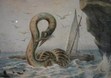 当时一艘渔船在捕捉到了一条鲸鱼,随后在进行解剖的时候有了意外发现,在鲸鱼肚子中发现一只未被完全消化生物,长达六米,头部像马,身体细长,长着一对大鳍,尾部有着平行鲸状的尾鳍。之后在运往美国芝加哥博物馆途中,竟然不翼而飞了,至今也没有找到尸体。