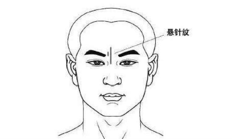 在面相中眉心中央的位置为印堂(命宫)的所在,若在这个位置长有一条深刻的直纹穿过印堂穴,这种纹被称作“悬针纹”。
