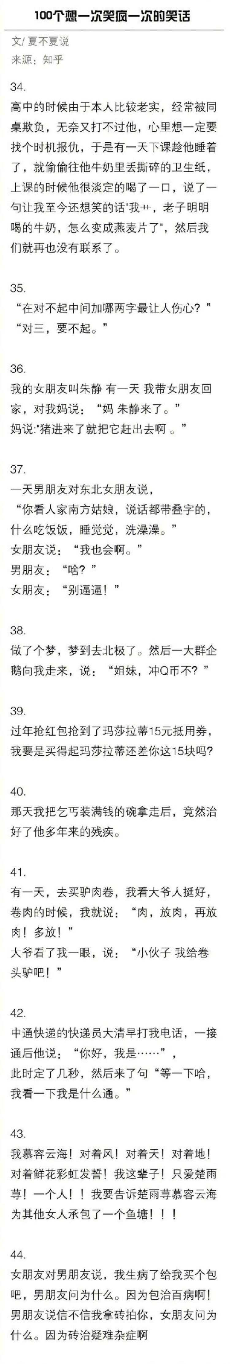 一想到就笑的笑话,100个笑破你肚皮的笑话