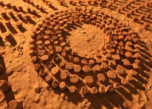 这些围成木桩粗细有序,例如最里面一层木桩直径为3厘米,最外层木桩直径为10厘米。我们从上方看上去。整个墓排列井然有序,十分壮观。世界上许多游客都慕名前来,在观看后都纷纷发出赞叹的声音,这宏伟的杰作真是古人创作的,真是难以令人想象。