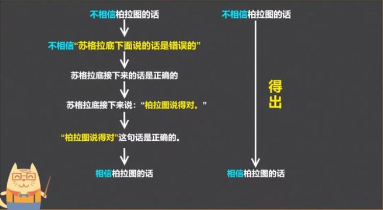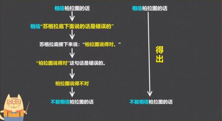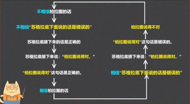 如果我们相信柏拉图说的话,那么苏格拉底接下来的话就是错误的,即“柏拉图说得对”这句话是错误的,那么说明柏拉图说得不对,就不能相信柏拉图的话。