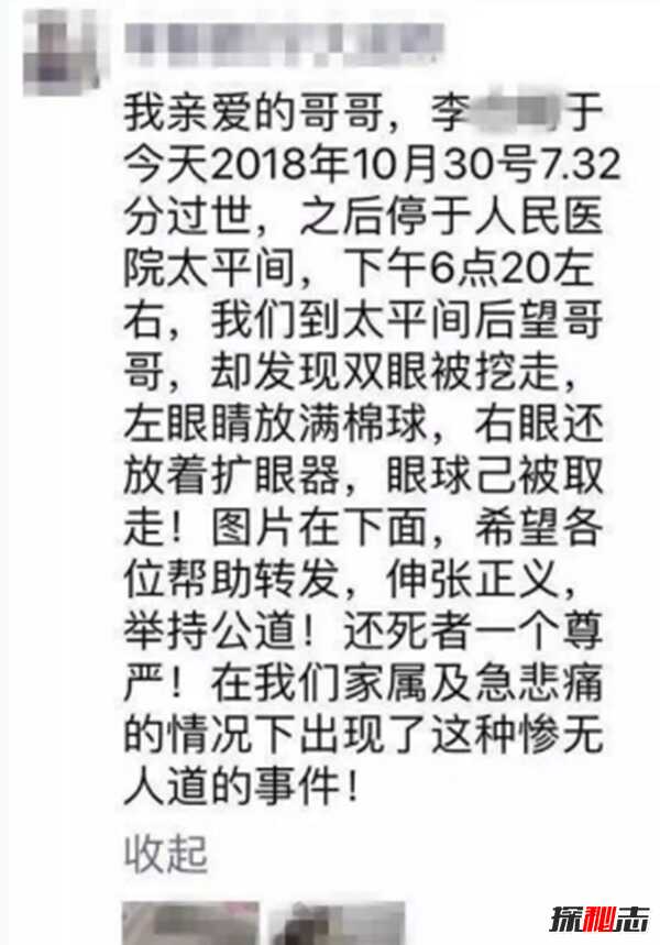 湖南太平间遗体双眼被挖?到底是什么原因