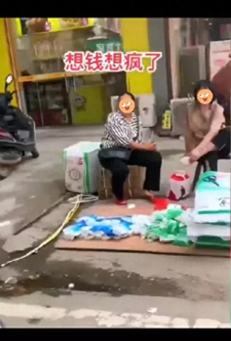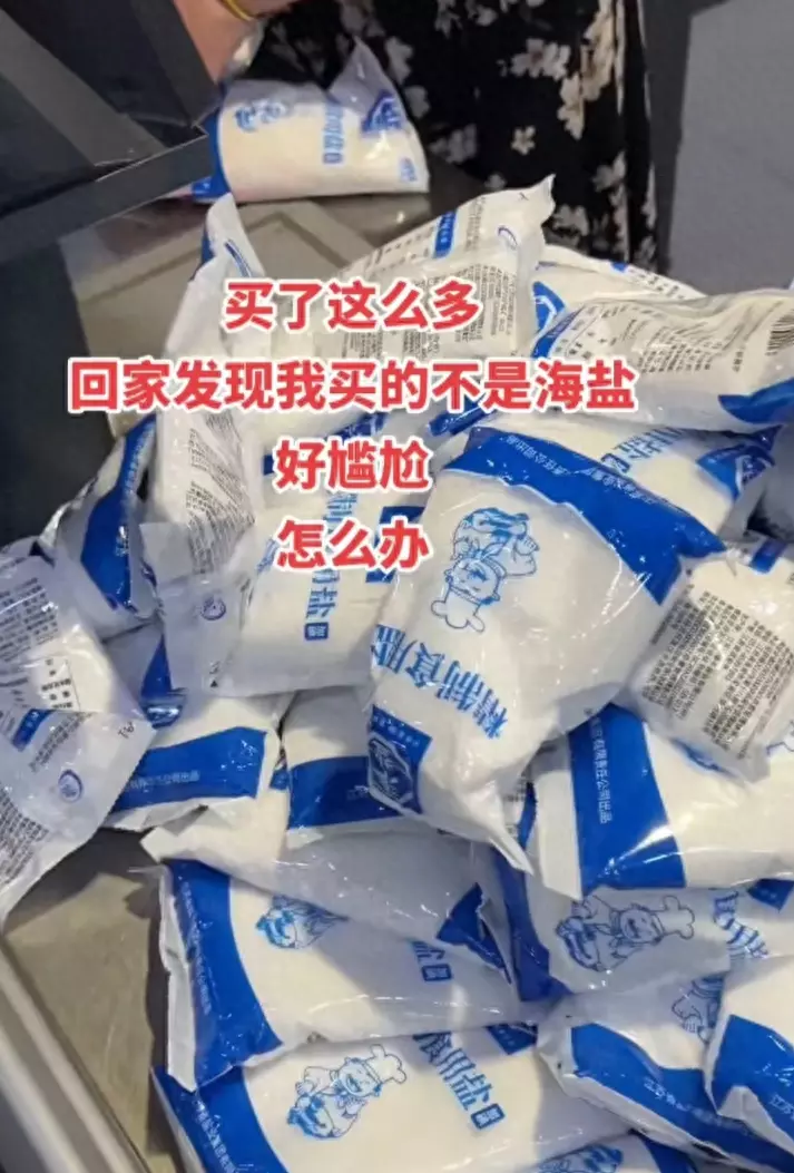 从截图来看,这两名妇女身边摆放着大量的食盐,有大袋子装的,也有纸箱子装的,在她们面前还有成堆的小袋食盐,但是却没有见到一个人来买。