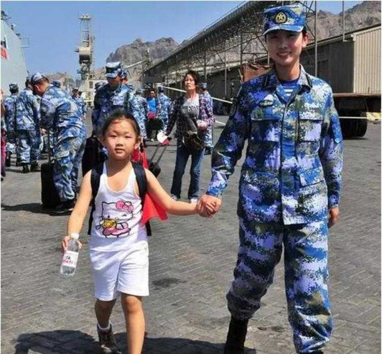 编队夏平政委就有一张牵手巴基斯坦小女孩的照片,当时这家人一两岁的孩子由父母抱着,另一只手还要拖着大大的行李箱,五六岁的小女孩便没人照顾,只得独自跟在大人身后。夏政委看到这样的情景心疼不已,跑上去一只手牵着孩子的手,另一只手拖着行李箱。厚而有力的手掌温柔地牵起棕褐色的小手,他们的背影多像慈父爱怜女儿。