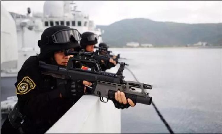 一道道指令迅速从舰艇广播里发出!靠码头、撇缆绳、系缆绳、搭舷梯,一系列规定动作干脆利落!身着黑色特战服的10名特战队员和10名全副武装的舰员,犹如一道道闪电,警惕而轻捷地从舷梯上跃然而下,迅速把码头围了一圈,进行持枪警戒,3名特战队员就位舰艇制高点狙击部位和重机枪部位!直升机进入战斗值班,随时准备应对各种突发情况!码头上安检、警戒工作井然有序、忙而不乱地展开!