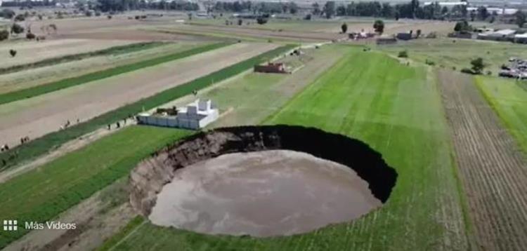 类似这样的“天坑”其实还有不少,例如在去年5月底,墨西哥普埃布拉州的一处农田中也曾经出现了一个类似的巨大“天坑”,在这个“天坑”里面还注满了水,在水中还时不时有气泡冒出来。一开始这个“天坑”直径不到30米,但是它以比较快的速度不断扩张,现在直径已经超过了126米,深度达到了20米,而且还可能会继续扩大。