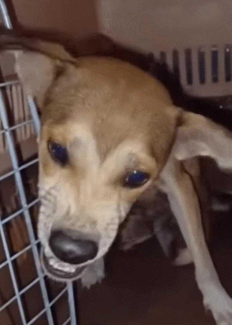 因为狗狗头上的奇特毛色,大家给它起名为“阿童木”。被关进笼子的狗狗非常暴躁,当人们往笼子里放毛巾时,它龇着牙时刻准备着咬人,看得出来它的心情依旧非常糟糕。
