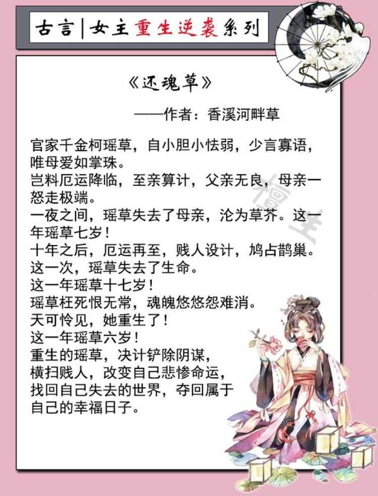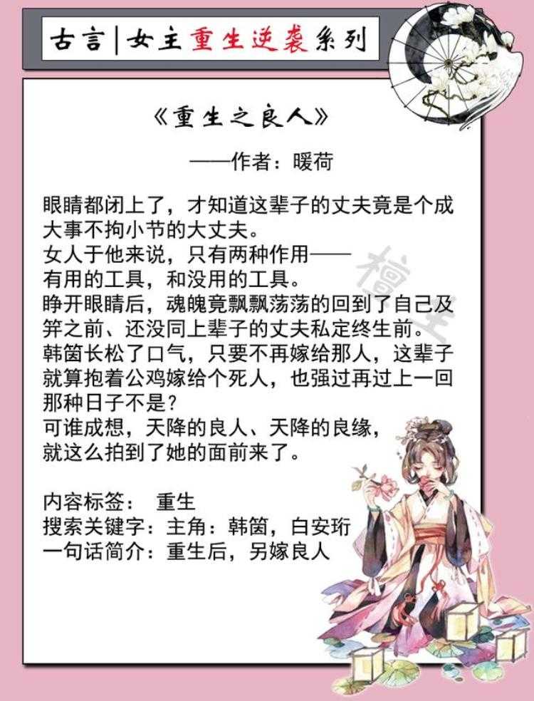 古代重生甜宠文短篇小说推荐「经典古言重生文推荐」