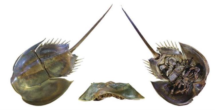 鲎的长相怪异,类似一个残留着藤蔓的大葫芦,以至于许多人误将其头尾颠倒来认知,又得名“海怪”。