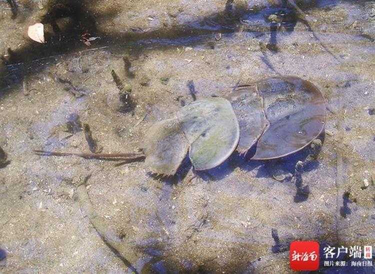 由于红树林大型底栖动物研究的需要,我曾在过去十多年的时间里几乎走遍海南的红树林分布区,也在海口东寨港、文昌会文、儋州新盈湿地多次遇到鲎或其尸体。有一次在会文涨潮的红树林里开展调查,一对圆尾蝎鲎抱对从我的脚边游过,我激动得差点把相机甩到海里。