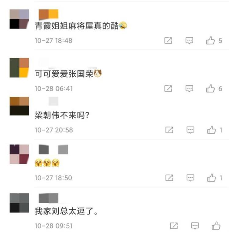 网友看到刘嘉玲成为脱口秀主持人,有人提到梁朝伟会不会参加。也有网友表示张国荣实在是太可爱了,还有网友觉得林青霞的麻将屋太酷了。