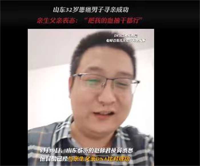 8月30日,山东临沂的赵修君收到四川绵阳打拐民警的消息,赵修君与亲生父亲的DNA比对成功。赵修君与父亲已经进行了短暂的交流,父亲得知赵修君的病情之后,表示会竭尽一切帮助儿子,“把我的血抽干都行。”