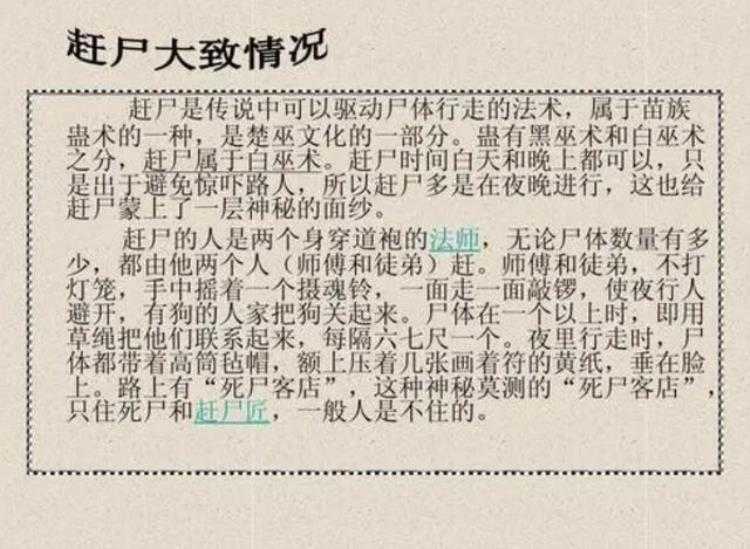 于是,到了夜晚时,解放军战士进了旅店,向店老板询问了情况,店老板环顾了一下四周,确定附近没旁人后,悄悄趴在解放军战士耳边告诉他:“我告诉你,这群人是赶尸的,走在前面的是赶尸匠,后面的是尸体。”