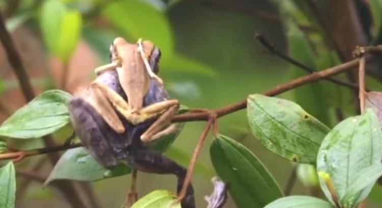 猫虽然吃老鼠,但林蛙也难逃一劫,一样会成为它的盘中餐。