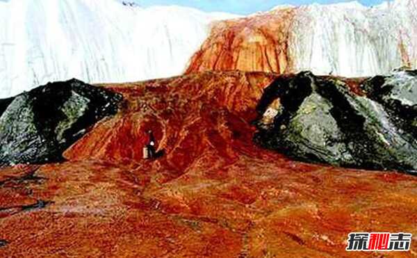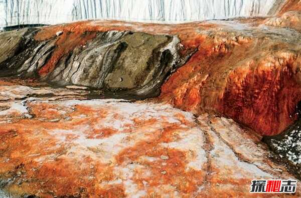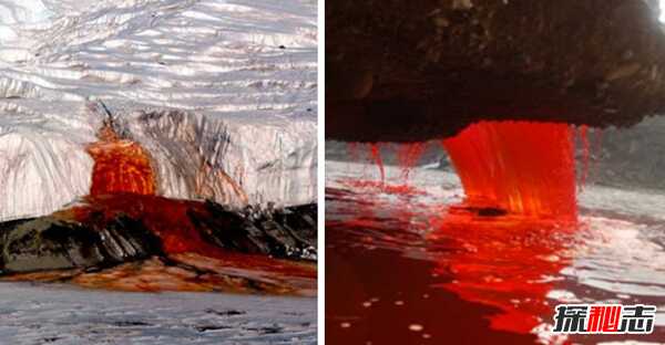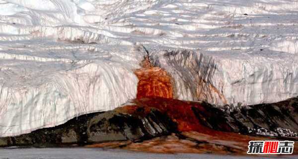 这个瀑布被称为“血瀑布”,它是富含铁的高盐度海水的结果,水流来源于一个由冰盖覆盖的冰池,冰层距血瀑布几公里远。这里的海水由铁引起的红色与严酷的白色环境形成了鲜明的对比,使瀑布成为它的名字。