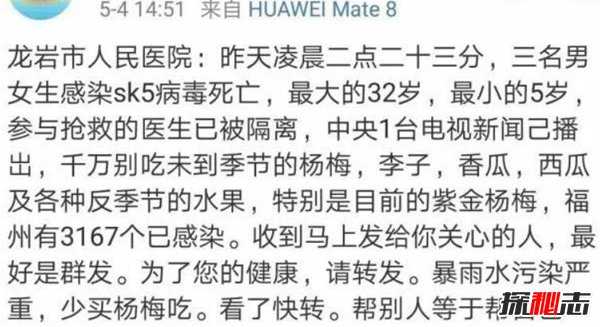 吃杨梅、李子、香瓜等感染sk5病毒