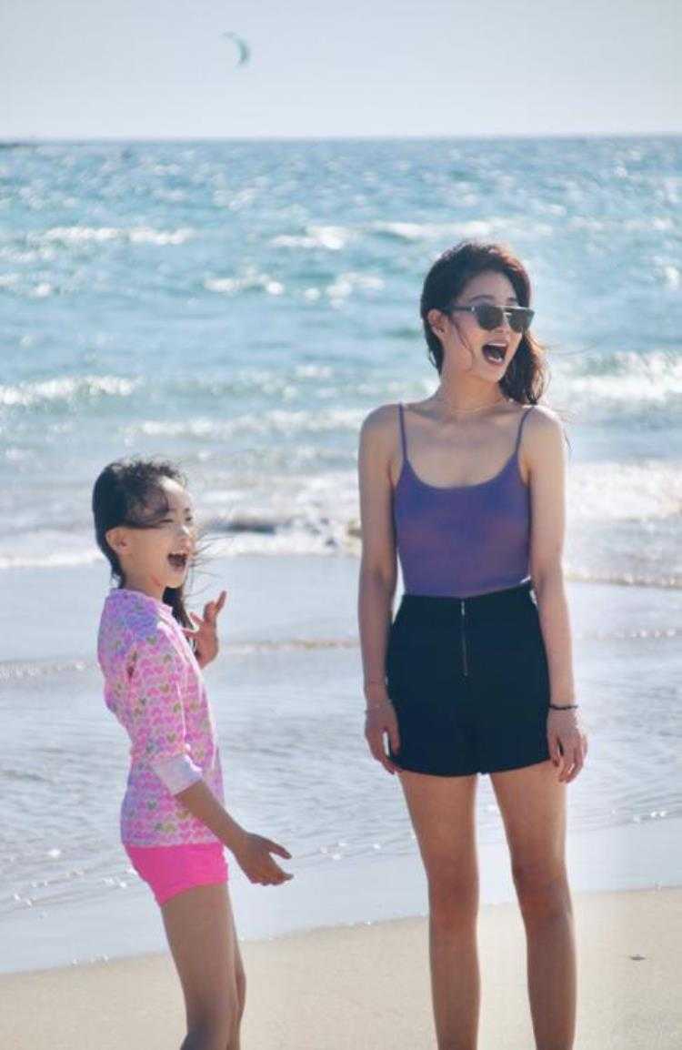 冲浪结束后,殷桃坐在沙滩边,俏皮地吐舌头,也许是阳光有些刺眼,她微微皱眉眯起了眼睛。她的皮肤细嫩光滑,完全看不出是42岁的人,反而很像少女,这样的好状态的确很让人羡慕。