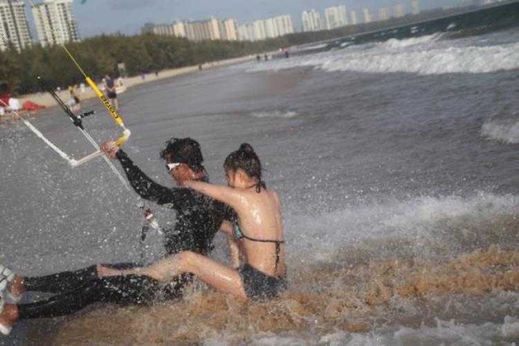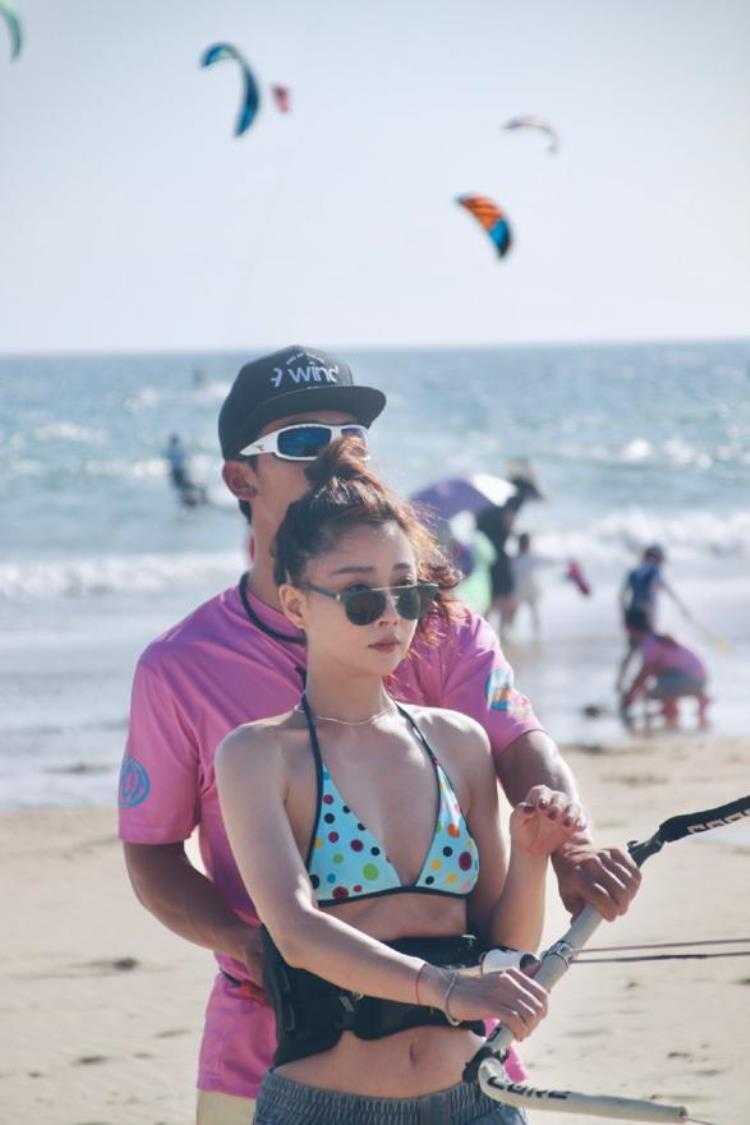 在海上冲浪时,殷桃整个人都挂在教练身上,她的腿也放在对方的腰部,搂抱的姿势特别亲密。可以看出她还是有些害怕的,毕竟这也是高难度的项目,还好两人配合默契,才没有发生意外。