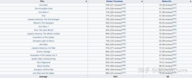 相比之下,漫威电影的发挥比较稳定,豆瓣排名前十的漫威电影中,福斯、索尼、MCU电影雨露均沾,其中以MCU电影数量居多。外媒对于MCU的包容度也比较高,烂番茄和MTC平均分为84%和68分。