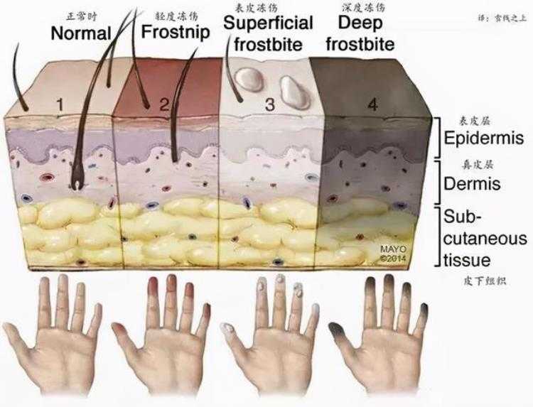 体温长时间低于正常温度时,人体将会“弃车保帅”,也就是皮肤和肢体末端的血液会流向体内的核心部位,确保身体器官和大脑的温度能够维持正常运转,这也是为什么在生活中很少会发生冻死现象,但经常会发生冻伤现象。而冻伤最常见的就是手指和脚趾被冻伤,过去农村小孩子上学经常会看到手被冻伤,这是因为肢体末端的血管较细较少,而手脚又经常暴露在寒冷环境中,但这种冻伤经过调理之后可以恢复。