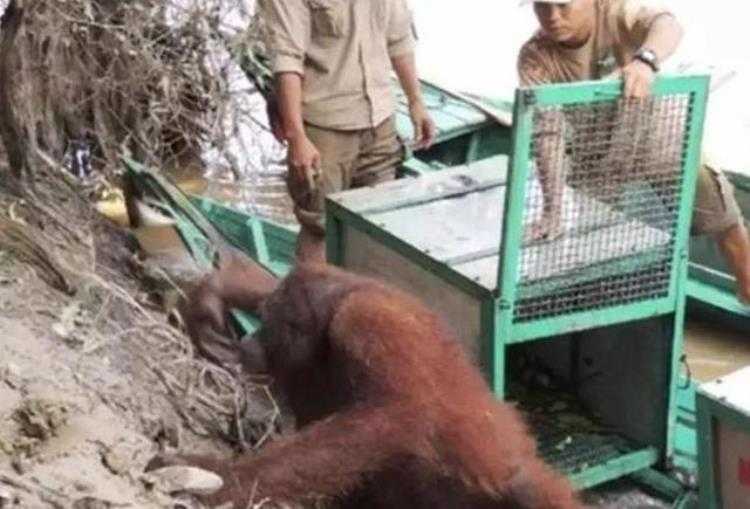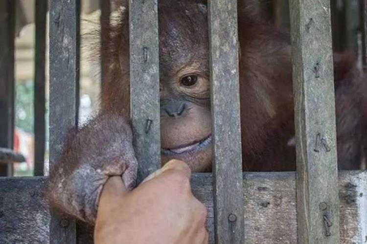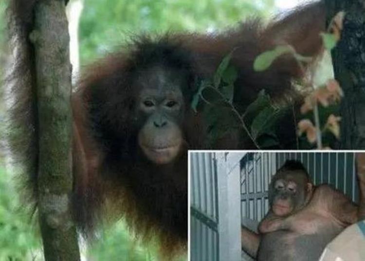 印尼红毛大猩猩,印尼一只红毛猩猩惨遭囚禁