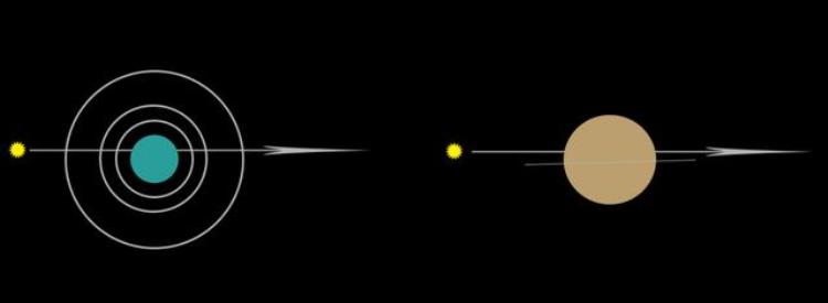 恒星被天王星(左)掩蔽时,必然被光环遮挡几次。被木星(右)掩蔽时,却有很大几率漏网。笔者制图