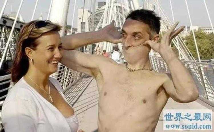 9最有弹性的皮肤,有一位英格兰的老兄,他拥有着世界上最有弹性的皮肤,因为他可以将自己身体上的皮肤任意拉扯拽到15.8厘米,还能将下巴上的皮肤拉盖到嘴巴上,这真是一件既搞笑又恐怖的事情