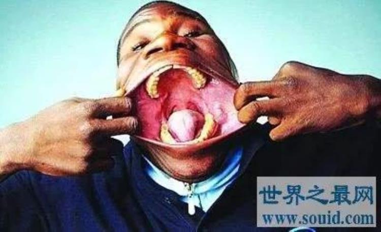 6最大的嘴,一位来自意大利的男子,他可以将一整罐可乐塞到自己的嘴里,也因此一举获得了“世界第一大嘴男”的称号。他的嘴展开后可长达17cm,简直就跟河马的嘴没有两样。